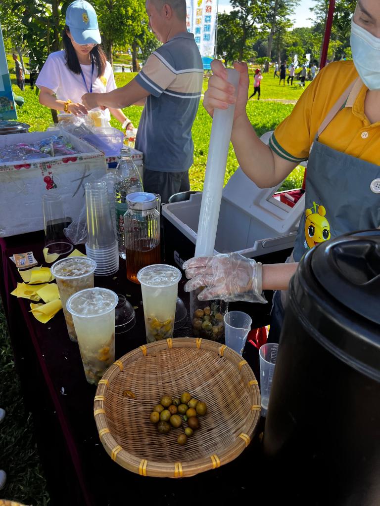 集市现场制作的老盐黄皮水。新华社记者 陈子薇 摄