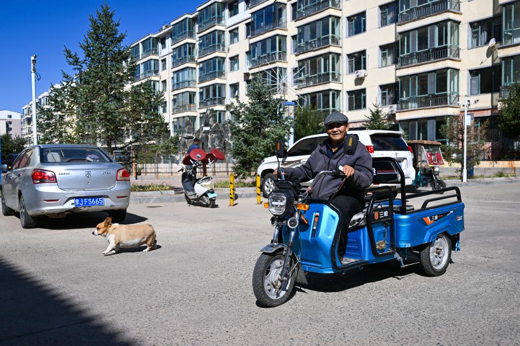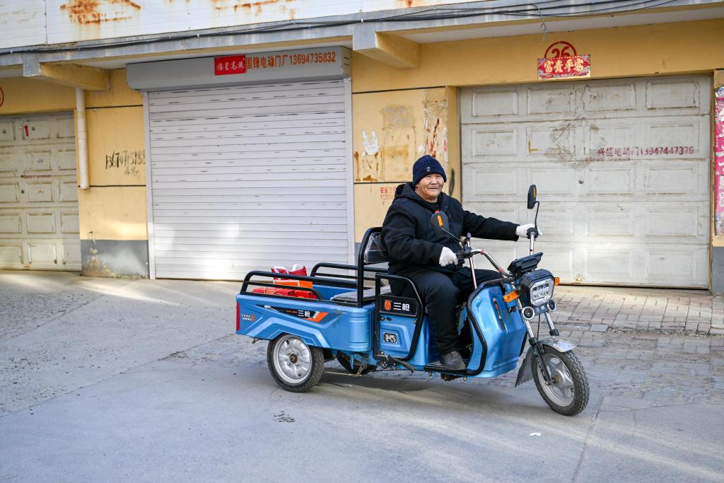 2024年11月20日,扎拉嘎木吉骑上三轮车,去看望都贵玛老人。
