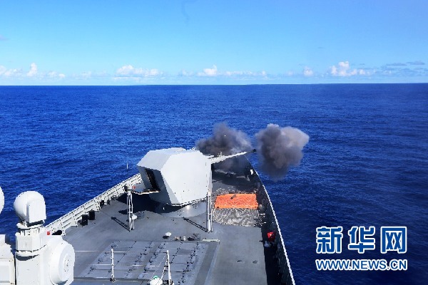 “嘭嘭嘭——”率先開火的是長沙艦。不到一分鐘后,海口艦也開始了射擊。此起彼伏的炮聲,讓平靜的大洋瞬間彌漫著硝煙的味道。