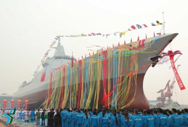中國(guó)海軍新型驅(qū)逐艦首艦下水儀式28日上午在上海江南造船(集團(tuán))有限責(zé)任公司舉行。這型驅(qū)逐艦是我國(guó)完全自主研制的新型萬(wàn)噸級(jí)驅(qū)逐艦,先后突破了大型艦艇總體設(shè)計(jì)、信息集成、總裝建造等一系列關(guān)鍵技術(shù),裝備有新型防空、反導(dǎo)、反艦、反潛武器,具有較強(qiáng)的信息感知、防空反導(dǎo)和對(duì)海打擊能力,是海軍實(shí)現(xiàn)戰(zhàn)略轉(zhuǎn)型發(fā)展的標(biāo)志性戰(zhàn)艦。尹航 攝