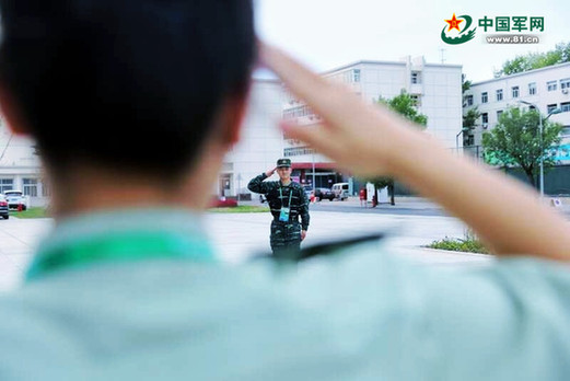 “父親,原諒我選擇在安保一線向你致以軍禮?!?月28日,上哨前的蔡志豪對著江西老家的方向鄭重敬禮!孫凱攝