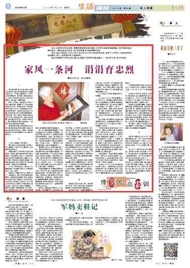 老了老了,我沒有成為當代穆桂英。但我的兒孫輩,不論在哪一個行業(yè)干,不論地處南北,不論富貴貧窮,都有一股浩然英雄氣。沒了孫子和重孫,但我又多了許許多多的“兵孫兒”。