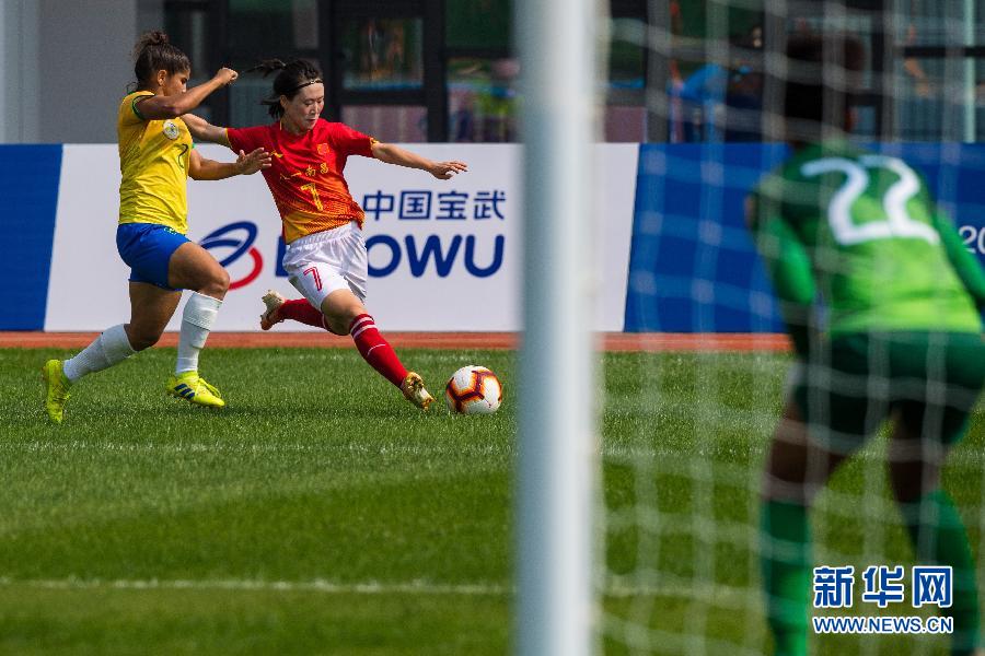 10月24日,中國(guó)隊(duì)球員劉艷秋(中)在比賽中突破傳球。 當(dāng)日,在武漢舉行的第七屆世界軍人運(yùn)動(dòng)會(huì)女子足球半決賽中,中國(guó)隊(duì)以2比1戰(zhàn)勝巴西隊(duì),晉級(jí)決賽。 新華社記者劉金海攝