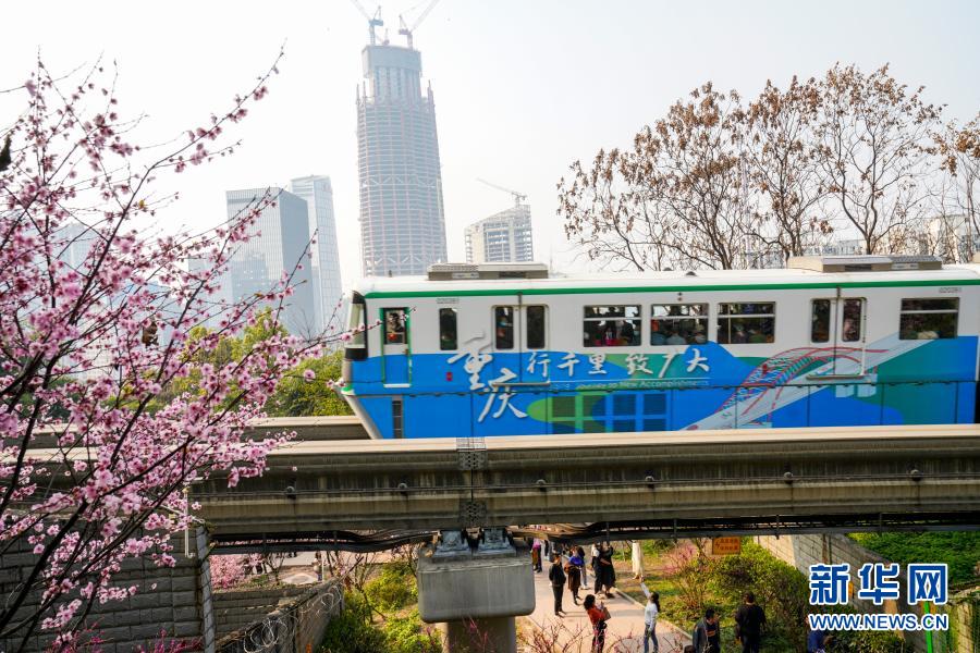 初春時(shí)節(jié),重慶氣溫逐漸回暖,暖陽里的山城春意盎然。在重慶軌道交通2號(hào)線佛圖關(guān)段,山城步道上的梅花簇簇綻放,單軌列車穿越花海,組成一幅賞心悅目的獨(dú)特城市景觀。