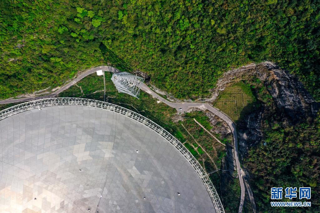 在貴州省平塘縣,被譽(yù)為“中國(guó)天眼”的500米口徑球面射電望遠(yuǎn)鏡(FAST)在群山中仰望星空,探求著宇宙奧秘。