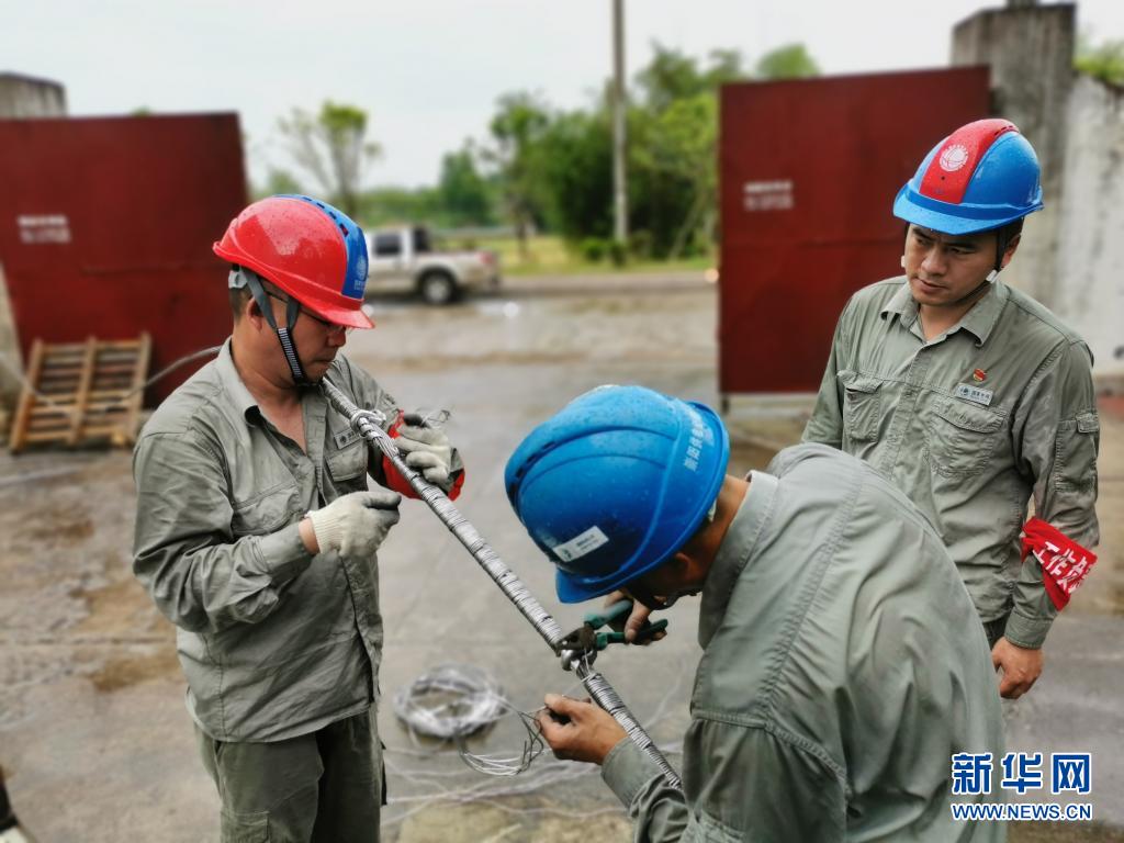 “跑山電工”黨員服務(wù)隊(duì)隊(duì)員在進(jìn)行搶修(5月3日攝)。