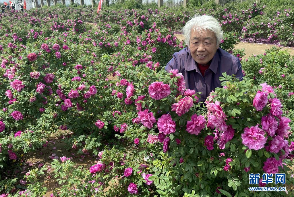 5月4日,一名老人在平陰縣玫瑰園內(nèi)欣賞玫瑰。