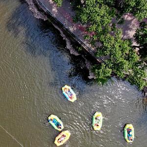 5月12日,游客在河北省邢臺(tái)市天河山景區(qū)漂流。