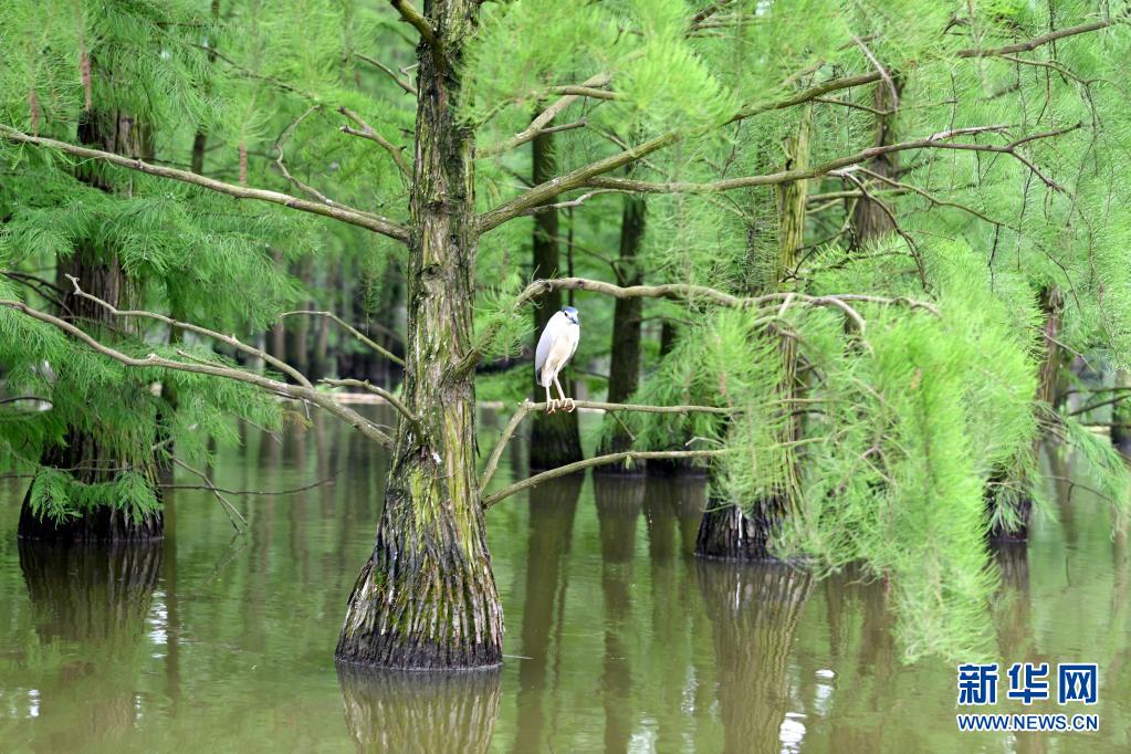 位于安徽省滁州市來安縣雷官鎮(zhèn)的池杉湖國家濕地公園經(jīng)過多年的生態(tài)修復(fù),形成分布數(shù)萬株池杉樹、具有獨(dú)特觀賞價(jià)值的“水上森林”濕地景觀,成為眾多鳥類生活、棲息的“天堂”。