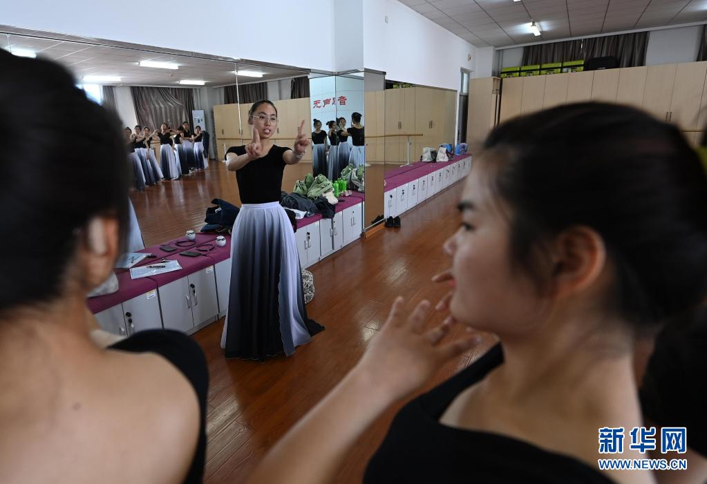 天津理工大學(xué)聾人工學(xué)院的舞蹈隊員們在學(xué)院的排練廳里練習(xí)(5月8日攝)。新華社記者 李然 攝