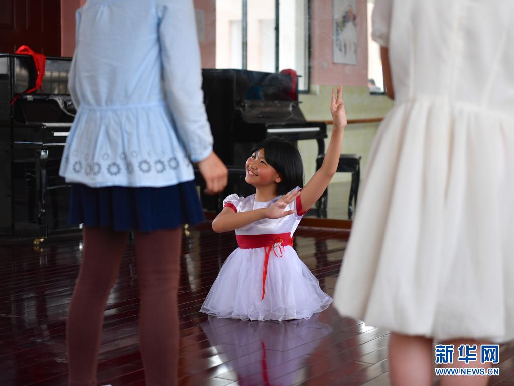 2017年5月17日,蔣張子怡在學(xué)校的舞蹈房內(nèi)給舞伴們講解舞蹈的分解動作。