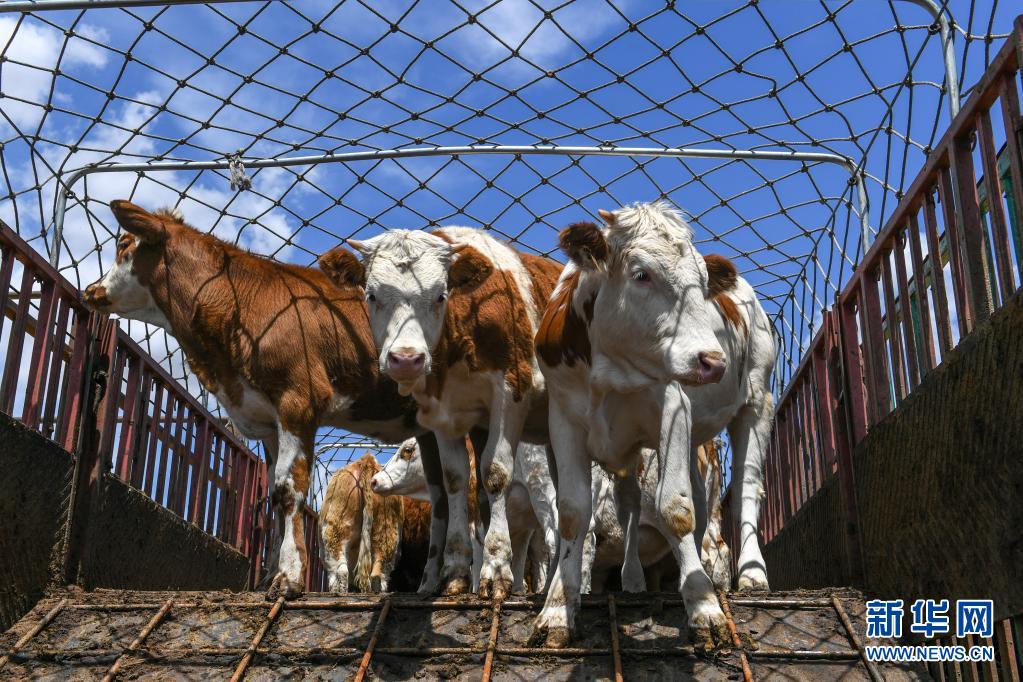 這是6月1日拍攝的開魯牛市物流廣場(chǎng)上已裝車的活牛。