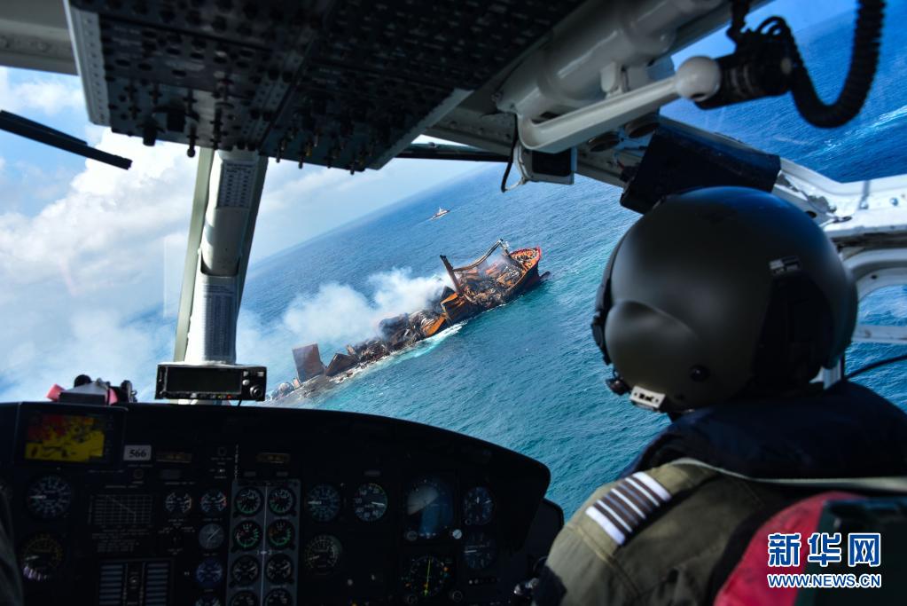 6月2日,斯里蘭卡總統(tǒng)戈塔巴雅下令將起火貨船“X-PRESS PEARL”號拖向遠離科倫坡港的深海區(qū),以防引發(fā)更大的環(huán)境災難。“X-PRESS PEARL”號貨船5月20日抵達科倫坡港西北約9.5海里錨地時發(fā)出火警求救信號。斯里蘭卡海洋環(huán)境保護局官員5月28日表示,在科倫坡港附近起火燃燒的“X-PRESS PEARL”號貨船預計將會引發(fā)嚴重環(huán)境災難。新華社發(fā)(斯里蘭卡空軍媒體處供圖)