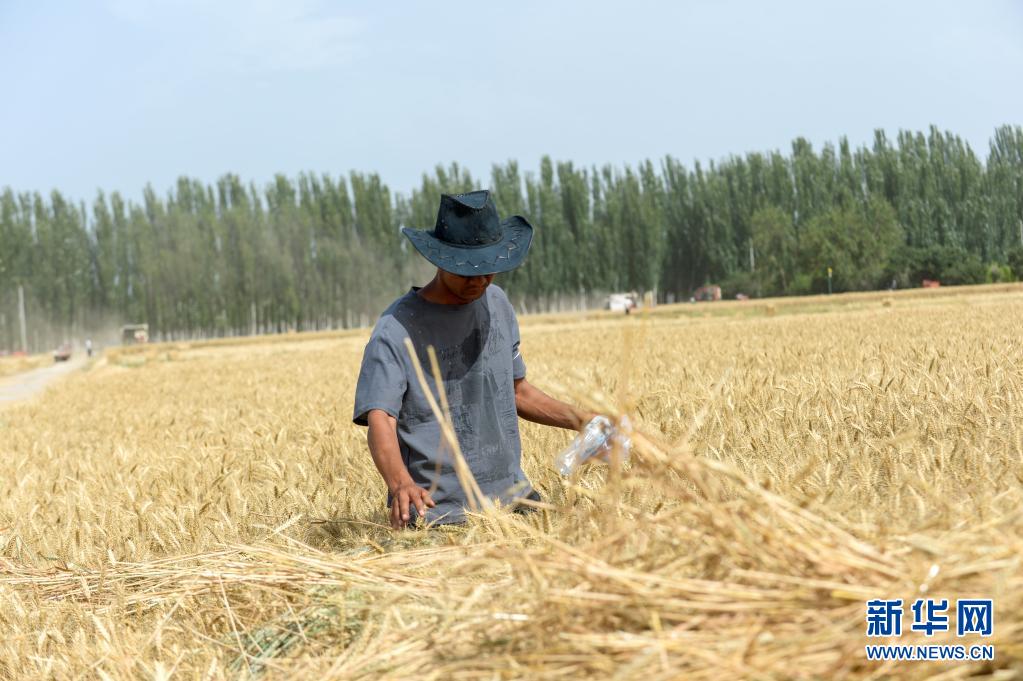 麥客阿地力·沙拉木在麥田間查看小麥長(zhǎng)勢(shì)(6月19日攝)。新華社記者 高晗 攝