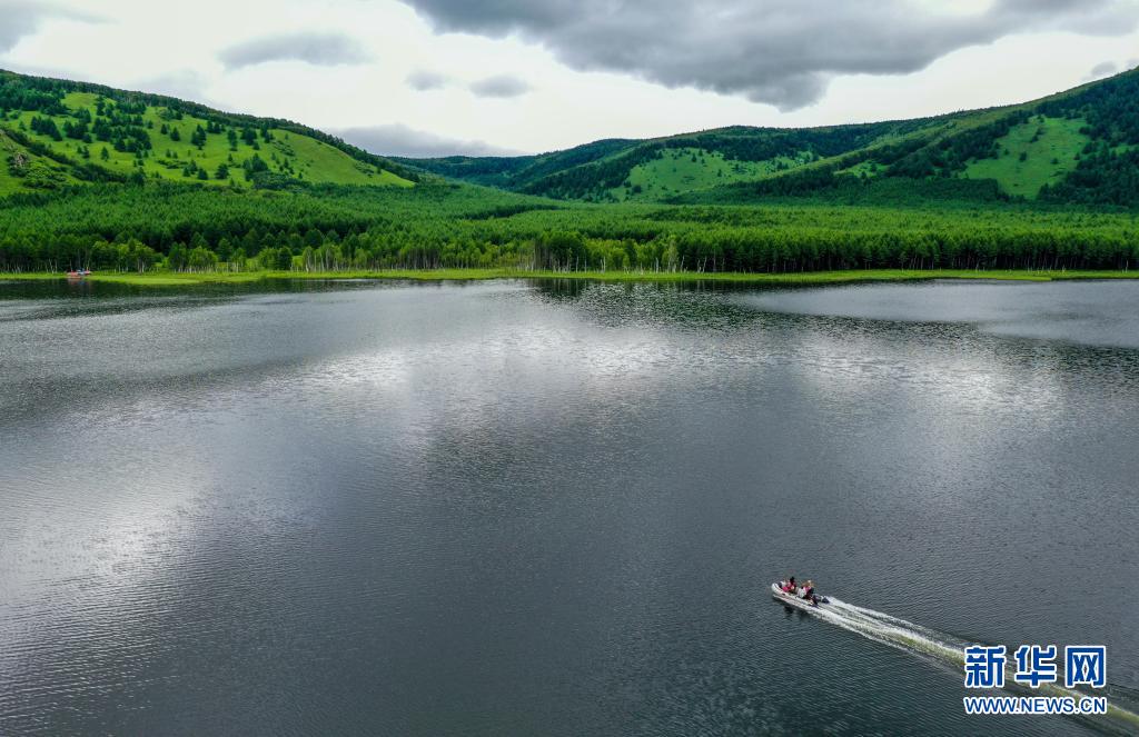這是7月14日拍攝的阿爾山國家森林公園內(nèi)的烏蘇浪子湖風(fēng)光(無人機照片)。