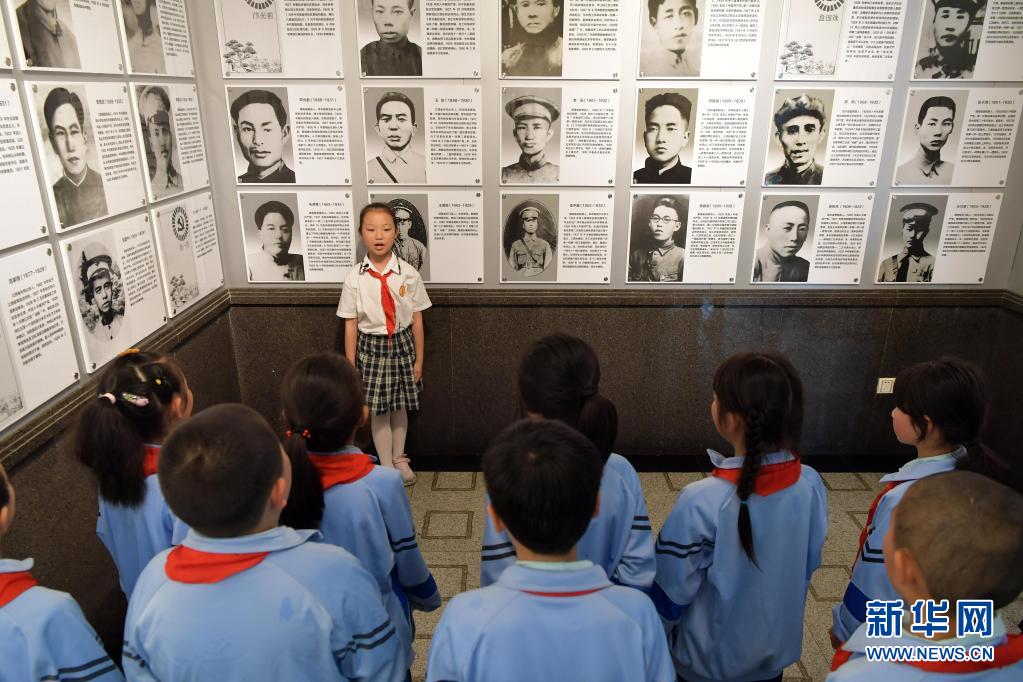 在井岡山革命烈士陵園,“小紅軍宣講團(tuán)”的成員周煜菡給前來(lái)參觀(guān)研學(xué)的學(xué)生們進(jìn)行義務(wù)講解(5月12日攝)。新華社記者 彭昭之 攝
