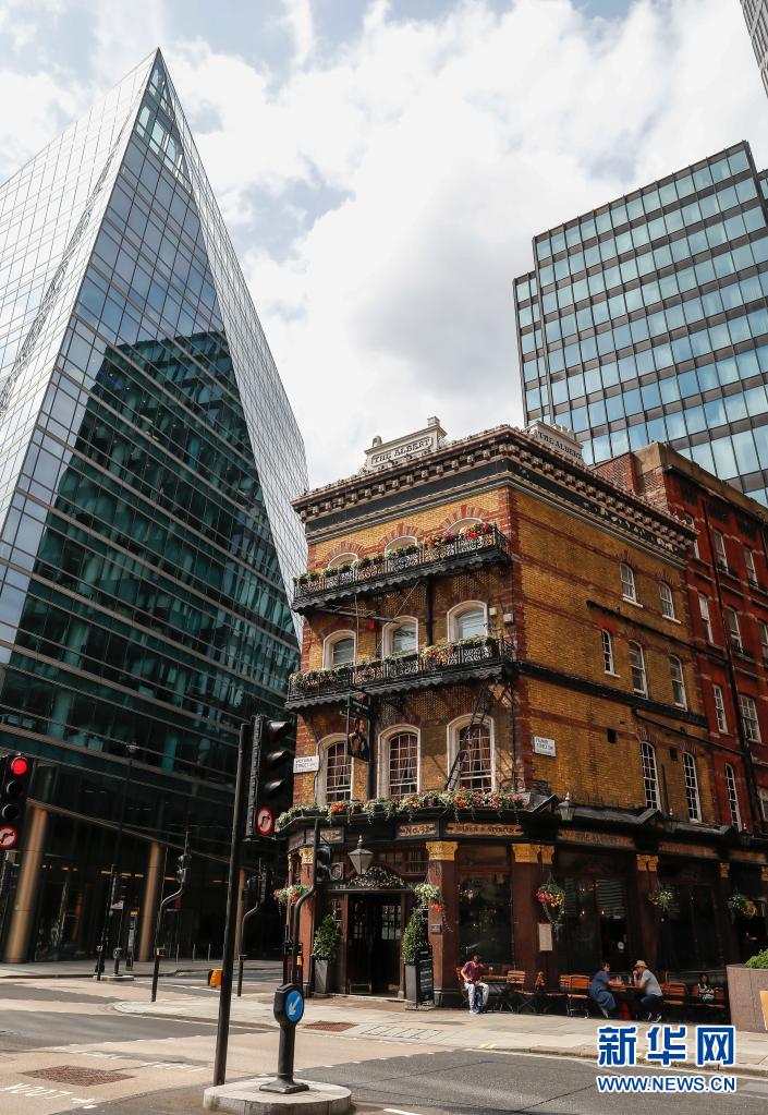 7月26日,人們坐在英國倫敦市中心一家酒吧的戶外餐飲區(qū)。