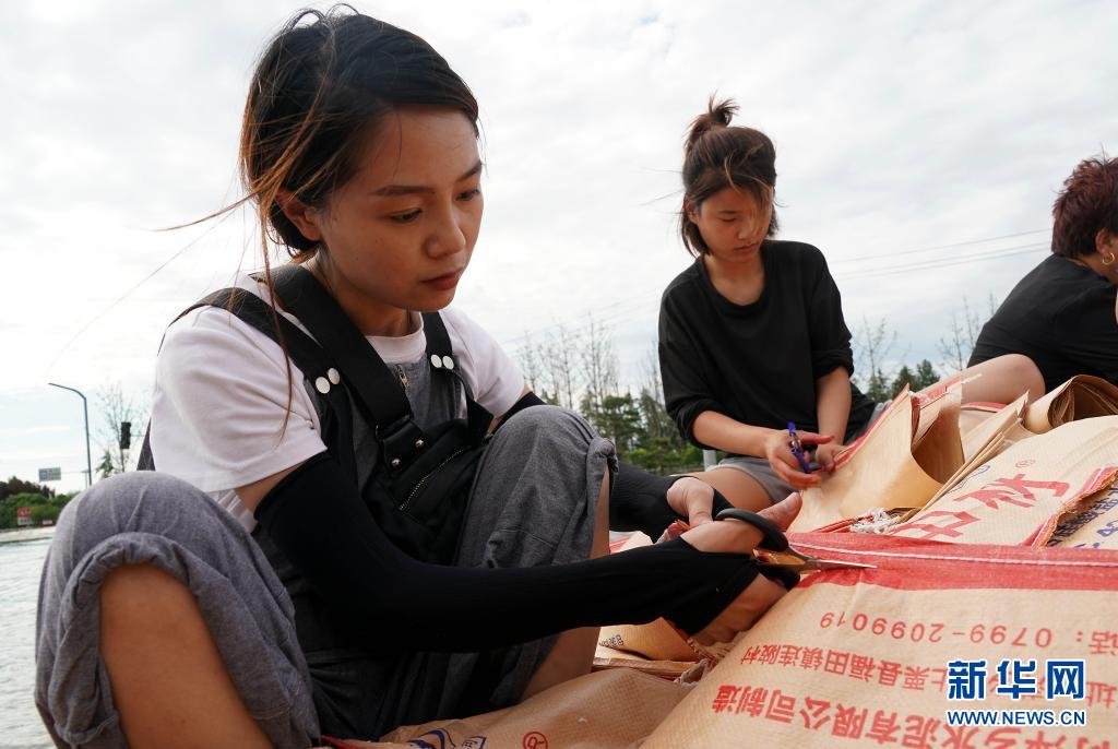 當(dāng)日,在河南省鶴壁市??h傅莊堤上,不少群眾自發(fā)前來(lái)和救援人員一起裝沙袋、運(yùn)沙袋,共筑堤壩。受持續(xù)強(qiáng)降雨影響,??h防汛形勢(shì)嚴(yán)峻,傅莊堤主要為浚縣縣城及26個(gè)村莊提供保護(hù)。新華社記者 李安 攝