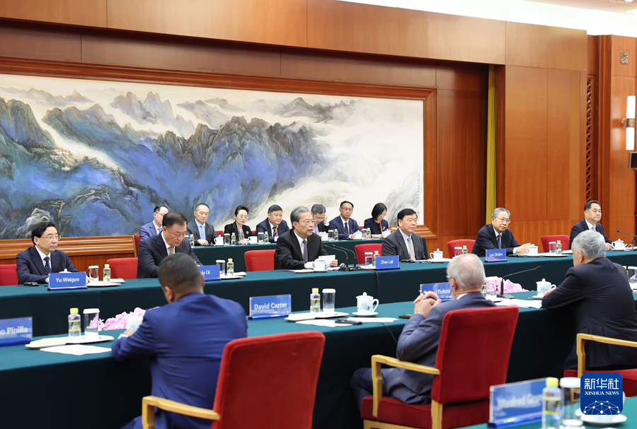 9月10日下午,全国人大常委会委员长赵乐际在北京集体会见出席2025年国际议员友好交流论坛的各国议员。