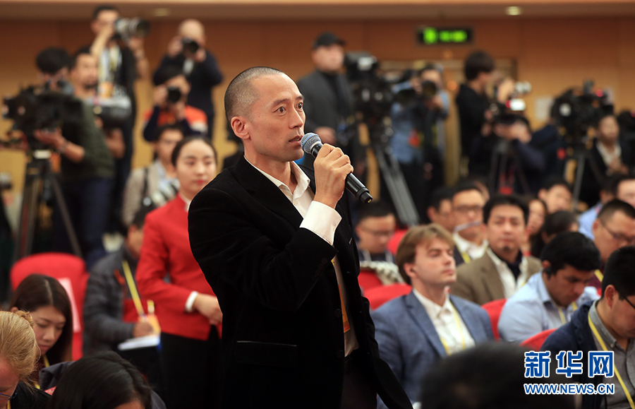 ??? 10月19日,十九大新聞中心舉行記者會,邀請中紀(jì)委、中組部負(fù)責(zé)人介紹黨的建設(shè)和全面從嚴(yán)治黨相關(guān)情況。圖為美國國際市場新聞社記者提問。 郝廣鵬攝
