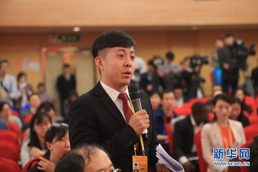 ??? 10月19日,十九大新聞中心舉辦集體采訪,邀請政法戰(zhàn)線代表談全面推進(jìn)依法治國。圖為澳門澳亞衛(wèi)視記者提問。新華網(wǎng) 郝廣鵬攝