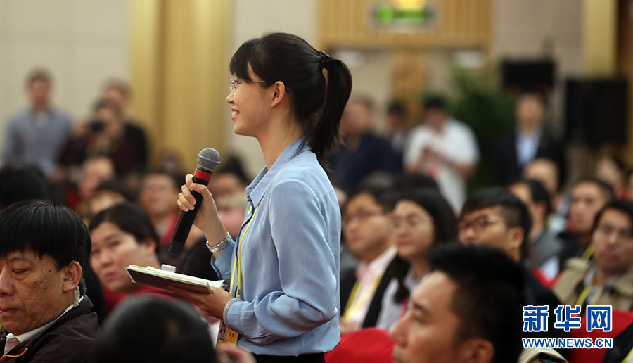 ???? 10月21日,十九大新聞中心舉辦記者招待會(huì),邀請(qǐng)中共中央統(tǒng)戰(zhàn)部常務(wù)副部長(zhǎng)張裔炯、副部長(zhǎng)冉萬(wàn)祥,中共中央對(duì)外聯(lián)絡(luò)部副部長(zhǎng)郭業(yè)洲介紹黨的統(tǒng)一戰(zhàn)線工作和黨的對(duì)外交往情況,并回答記者提問(wèn)。圖為中央人民廣播電臺(tái)記者提問(wèn)。新華網(wǎng) 郝廣鵬攝
