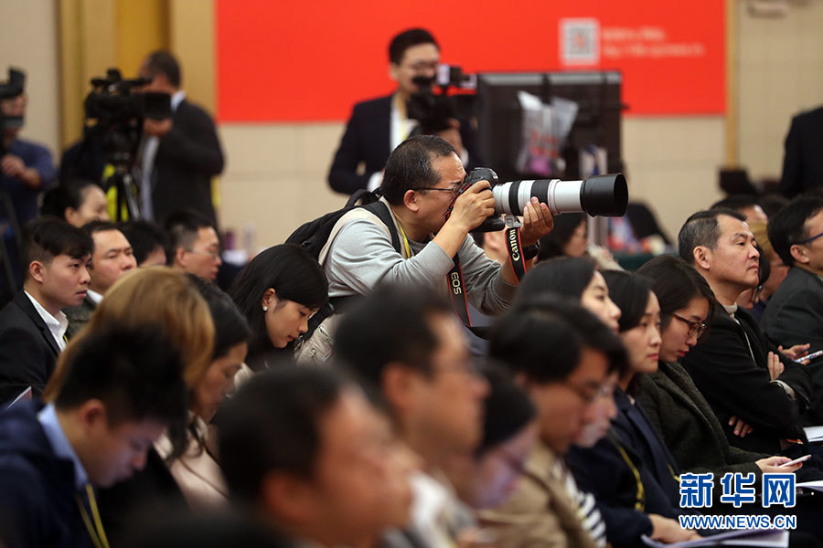 10月21日,十九大新聞中心舉辦記者招待會,邀請中共中央統(tǒng)戰(zhàn)部常務副部長張裔炯、副部長冉萬祥,中共中央對外聯(lián)絡部副部長郭業(yè)洲介紹黨的統(tǒng)一戰(zhàn)線工作和黨的對外交往情況,并回答記者提問。圖為現(xiàn)場記者。新華網 郝廣鵬攝