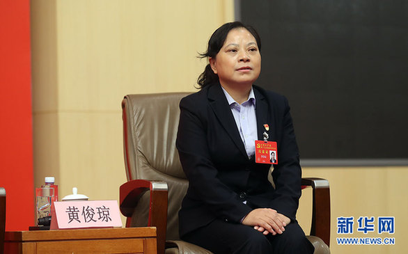 10月22日,十九大新聞中心在梅地亞中心二層新聞發(fā)布廳舉辦集體采訪活動(dòng),邀請(qǐng)教育領(lǐng)域代表談“教育綜合改革”。圖為貴州省黔東南州鎮(zhèn)遠(yuǎn)縣江古鎮(zhèn)中心小學(xué)教師黃俊瓊。新華網(wǎng) 郝廣鵬攝