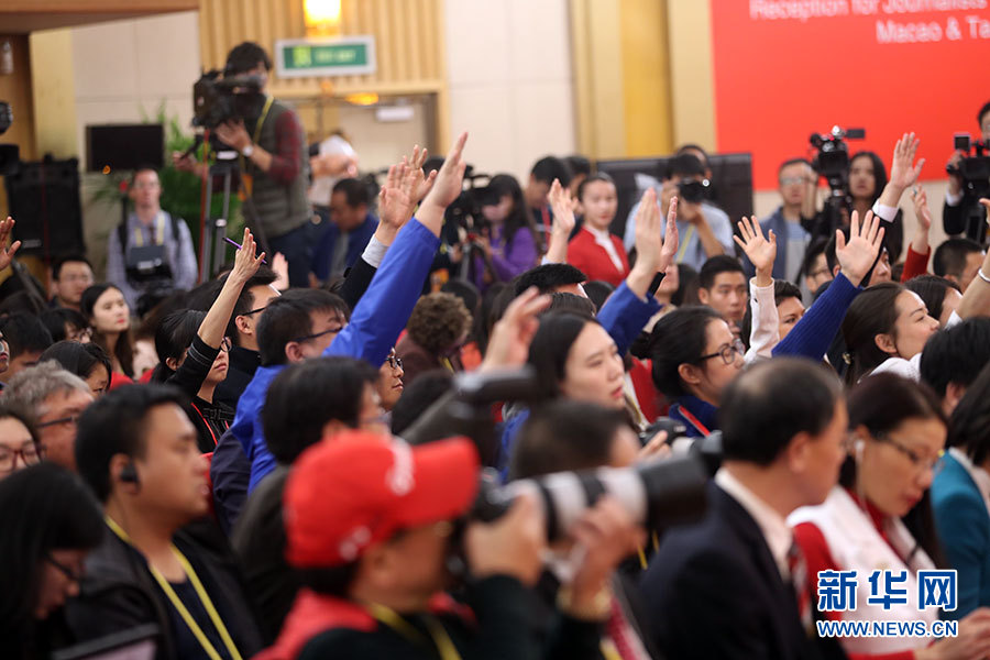 10月23日,十九大新聞中心舉辦記者招待會,邀請中央財經(jīng)領導小組辦公室副主任楊偉民,環(huán)境保護部黨組書記、部長李干杰介紹踐行綠色發(fā)展理念,建設美麗中國有關情況,并回答記者提問。圖為現(xiàn)場記者。新華網(wǎng) 郝廣鵬攝