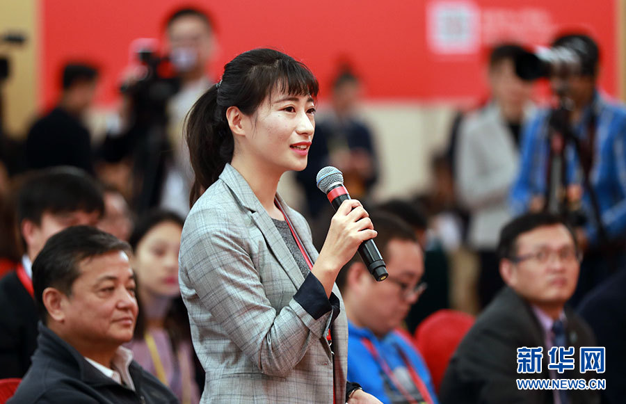 10月23日,十九大新聞中心舉辦記者招待會(huì),邀請(qǐng)中央財(cái)經(jīng)領(lǐng)導(dǎo)小組辦公室副主任楊偉民,環(huán)境保護(hù)部黨組書記、部長(zhǎng)李干杰介紹踐行綠色發(fā)展理念,建設(shè)美麗中國(guó)有關(guān)情況,并回答記者提問。圖為中華合作時(shí)報(bào)記者提問。新華網(wǎng) 郝廣鵬攝
