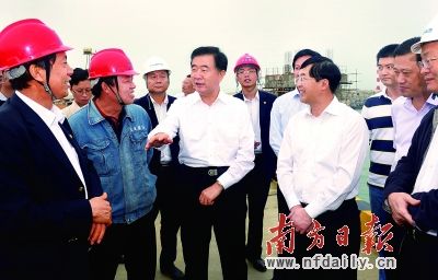 21日,汪洋在饒平縣潮州港亞太通用碼頭與企業(yè)負(fù)責(zé)人交談。南方日報(bào)記者 王輝 攝