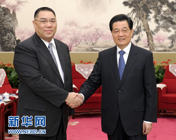 新華網(wǎng)北京12月21日電(記者李寒芳)國家主席胡錦濤21日下午在中南海會(huì)見了來京述職的澳門特別行政區(qū)行政長官崔世安,聽取了他對澳門當(dāng)前形勢和特區(qū)政府工作情況的匯報(bào)。