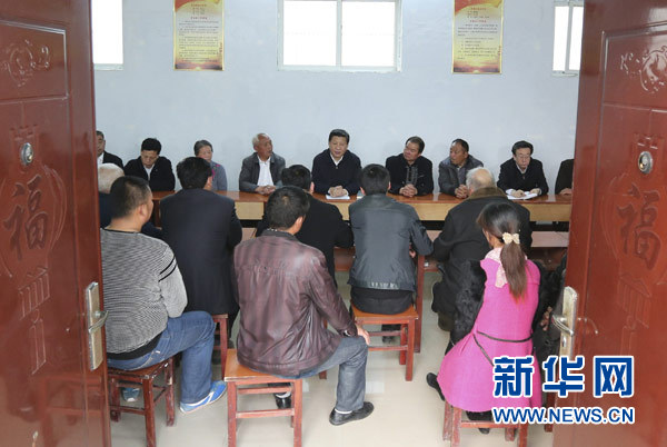 ??? 3月17日,習近平在東壩頭鄉(xiāng)張莊村村委會與干部群眾座談,聽取意見和建議。新華社記者丁林攝