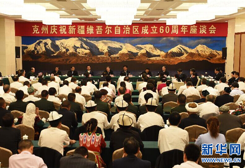 俞正聲還接見了克州有關(guān)負責同志、各界人士代表、援疆干部代表,同大家合影留念,并出席了克州慶祝新疆維吾爾自治區(qū)成立60周年座談會。