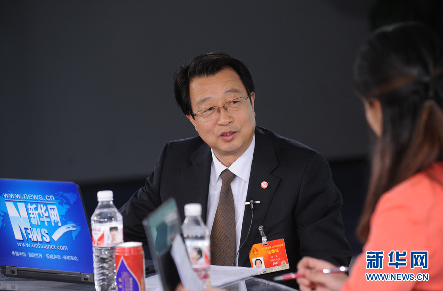 2015年3月13日,全國人大代表、中航飛機股份有限公司總經理唐軍做客新華網,就航空制造業(yè)面臨的機遇和挑戰(zhàn)與廣大網友展開交流。圖為唐軍與主持人交談。 新華網 陳競超 攝