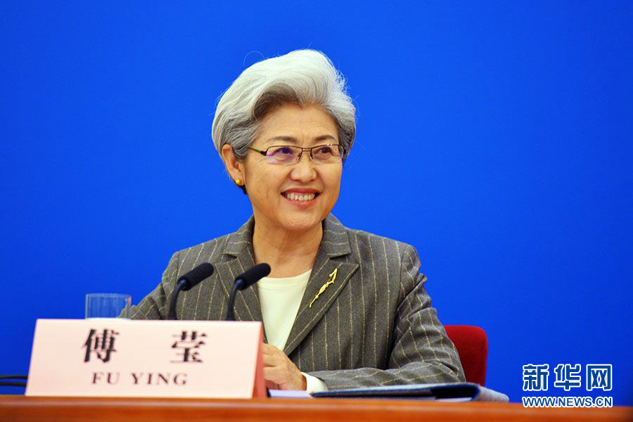 ????3月15日,國(guó)務(wù)院總理李克強(qiáng)在人民大會(huì)堂三樓金色大廳會(huì)見采訪十二屆全國(guó)人大三次會(huì)議的中外記者并回答記者提出的問題。圖為十二屆全國(guó)人大三次會(huì)議副秘書長(zhǎng)、發(fā)言人傅瑩。新華網(wǎng)/中國(guó)政府網(wǎng)?郭小天 攝