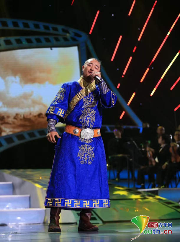 呼和牧人在《紀(jì)念中國共產(chǎn)黨成立95周年電影音樂會》演唱民歌。本人供圖