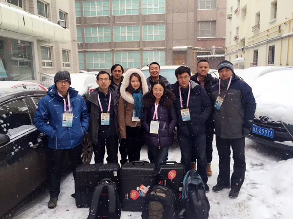 圖為2016年的風(fēng)雪中,記者與同事們一道參與在烏魯木齊舉辦的“第十三屆全國冬季運動會”報道。