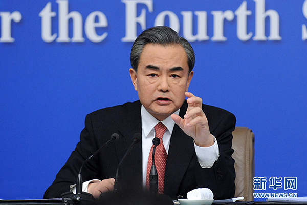 ????十二屆全國(guó)人大四次會(huì)議新聞中心于3月8日(星期二)10時(shí)在梅地亞中心多功能廳舉行記者會(huì),邀請(qǐng)外交部部長(zhǎng)王毅就“中國(guó)的外交政策和對(duì)外關(guān)系”的相關(guān)問題回答中外記者的提問。圖為外交部部長(zhǎng)王毅回答記者提問。新華網(wǎng)/中國(guó)政府網(wǎng)記者 陳競(jìng)超攝