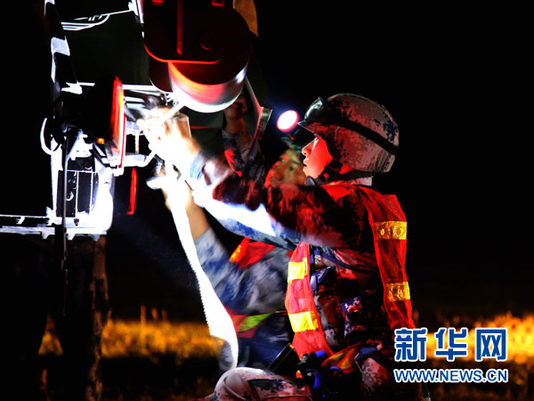 空軍地空導彈兵第二營參加“藍盾”演習,官兵在執(zhí)行夜間訓練任務(wù)時做緊急戰(zhàn)斗準備(2016年7月4日攝)。新華社發(fā)