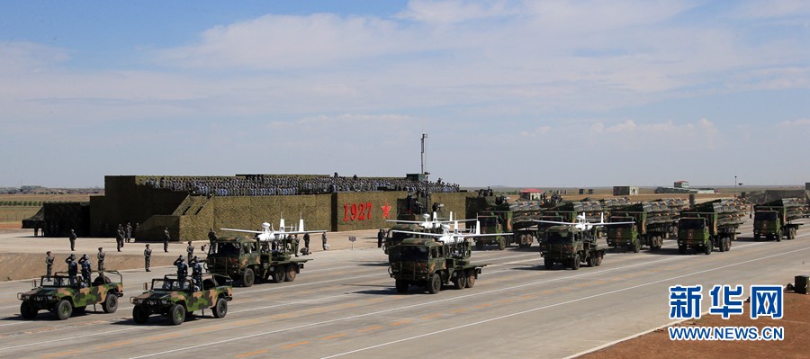 7月30日,慶祝中國人民解放軍建軍90周年閱兵在位于內蒙古的朱日和訓練基地舉行。中共中央總書記、國家主席、中央軍委主席習近平檢閱部隊并發(fā)表重要講話。這是無人機方隊。新華社記者 查春明 攝