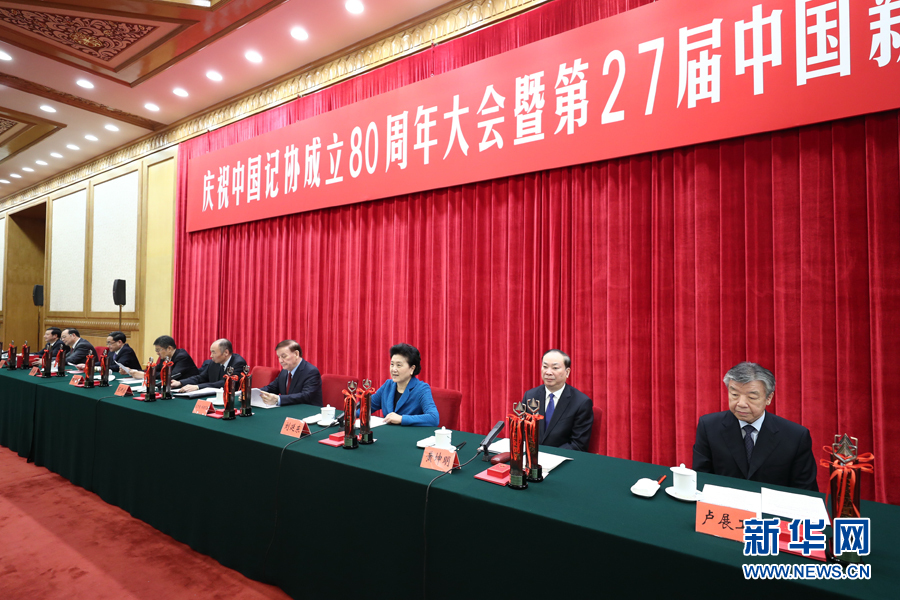 11月8日,慶祝中國記協(xié)成立80周年大會暨第27屆中國新聞獎頒獎報告會在北京舉行。國務(wù)院副總理劉延東在會上宣讀中共中央總書記、國家主席、中央軍委主席習近平的賀信。中共中央政治局委員、中宣部部長黃坤明出席大會并講話。新華社記者鞠鵬攝