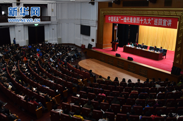 中直機(jī)關(guān)“一線代表親歷十九大”巡回宣講第三場(chǎng)報(bào)告會(huì)現(xiàn)場(chǎng)。新華社記者 徐速繪 攝