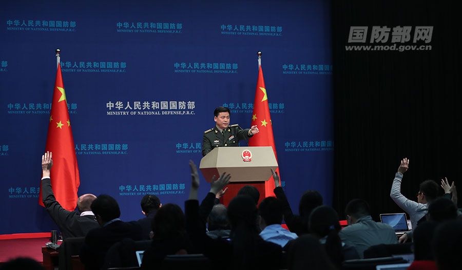 12月28日下午,國(guó)防部舉行例行記者會(huì),國(guó)防部新聞局副局長(zhǎng)、國(guó)防部新聞發(fā)言人任國(guó)強(qiáng)大校答記者問(wèn)。