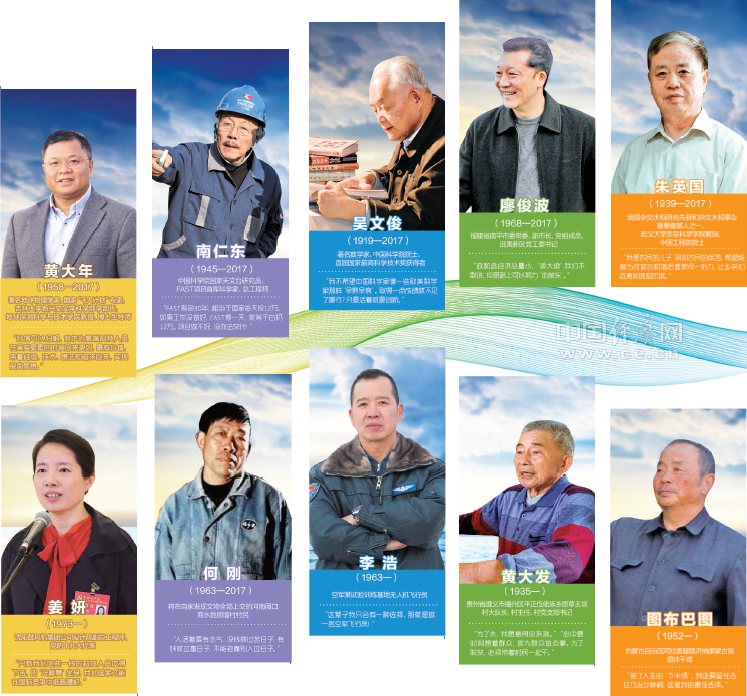在2017年即將離我們遠去的時刻,請讓我們用心記住他們的名字與面龐:黃大年、南仁東、吳文俊、廖俊波、朱英國、姜妍、何剛、李浩、黃大發(fā)、圖布巴圖……