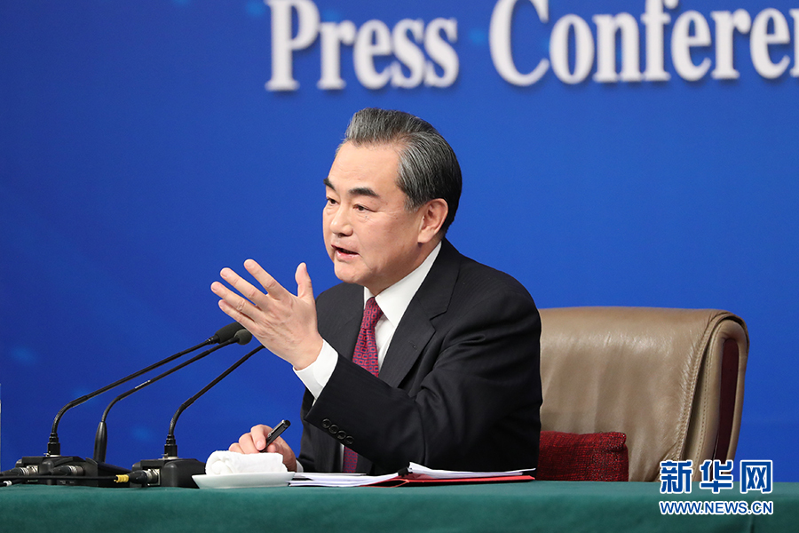 十二屆全國人大五次會議新聞中心于3月8日(星期三)10時在梅地亞中心多功能廳舉行記者會,邀請外交部部長王毅就“中國的外交政策和對外關(guān)系”的相關(guān)問題回答中外記者的提問。圖為外交部部長王毅回答中外記者提問。新華網(wǎng)/中國政府網(wǎng) 孫韜 攝
