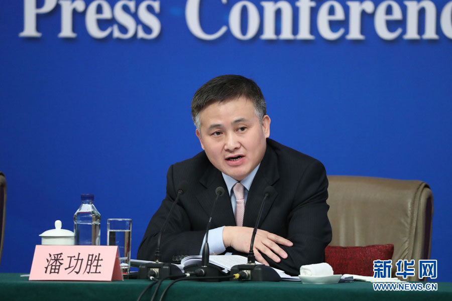 3月10日,十二屆全國人大五次會議新聞中心舉行記者會,邀請中國人民銀行行長周小川、副行長易綱、副行長兼國家外匯管理局局長潘功勝、副行長范一飛就“金融改革與發(fā)展”的相關(guān)問題回答中外記者的提問。圖為潘功勝回答記者提問。新華網(wǎng)/中國政府網(wǎng) 孫韜 攝