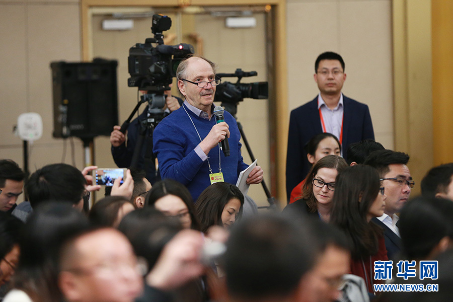 3月11日,十二屆全國人大五次會(huì)議新聞中心舉行記者會(huì),邀請(qǐng)工業(yè)和信息化部部長苗圩、副部長辛國斌和總工程師、新聞發(fā)言人張峰就“推進(jìn)實(shí)施‘中國制造2025’”的相關(guān)問題回答中外記者的提問。圖為德國世界報(bào)記者提問。新華網(wǎng)/中國政府網(wǎng) 傅義洲 攝