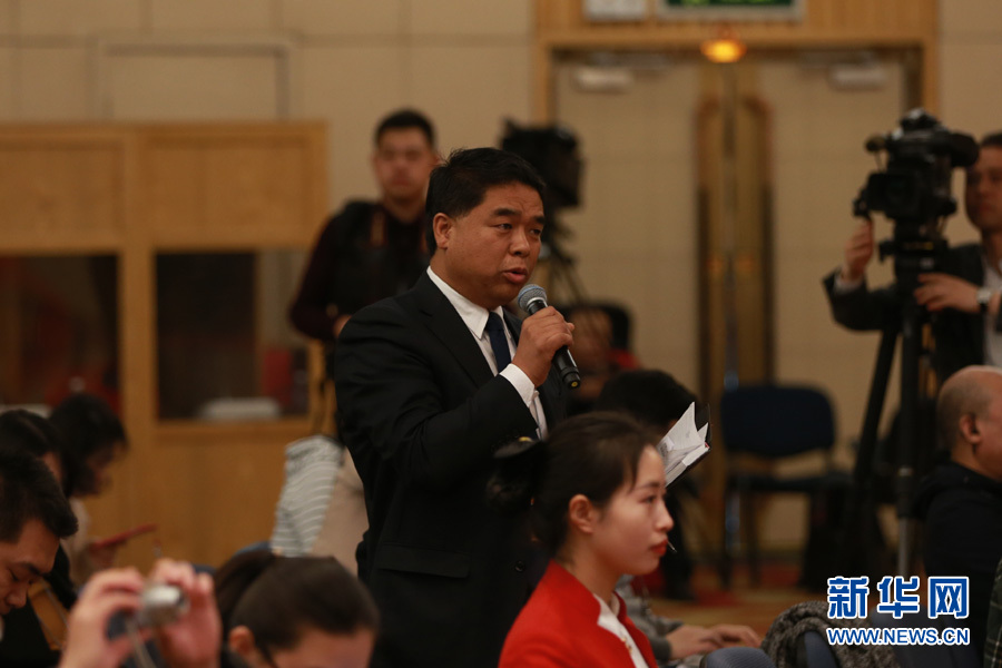 3月14日,十二屆全國(guó)人大五次會(huì)議新聞中心舉行記者會(huì),邀請(qǐng)國(guó)家質(zhì)檢總局局長(zhǎng)支樹平、副局長(zhǎng)兼國(guó)家認(rèn)證認(rèn)可監(jiān)督管理委員會(huì)主任孫大偉、國(guó)家標(biāo)準(zhǔn)化管理委員會(huì)主任田世宏就“質(zhì)量提升”的相關(guān)問題回答中外記者的提問。圖為消費(fèi)日?qǐng)?bào)記者提問。新華網(wǎng)/中國(guó)政府網(wǎng) 傅義洲 攝