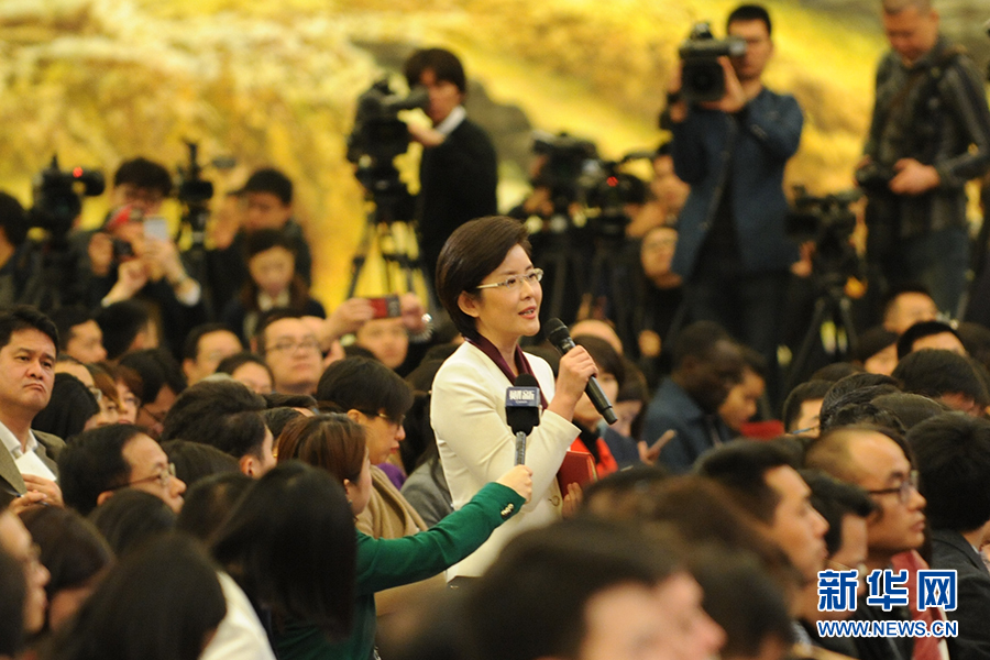 3月15日上午,國(guó)務(wù)院總理李克強(qiáng)在人民大會(huì)堂三樓金色大廳會(huì)見采訪十二屆全國(guó)人大五次會(huì)議的中外記者并回答記者提出的問(wèn)題。圖為中央電視臺(tái)記者提問(wèn)。新華網(wǎng)/中國(guó)政府網(wǎng) 翟子赫 攝?